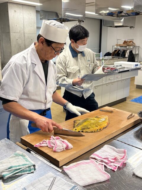 当組合理事長 渡邊 一夫、副理事長 小宮 髙之 の2名が、東京都が実施する「水産物歩留調査(可食部割合調査)」に協力いたしました。